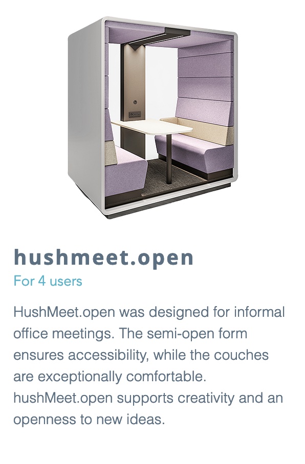 See our range of Hush acoustic solutions – fully independent spaces that facilitate telephone conversations, work in silence and focus or facilitate meetings. Discover solutions for open spaces, co-working zones and offices that lack additional space or privacy.